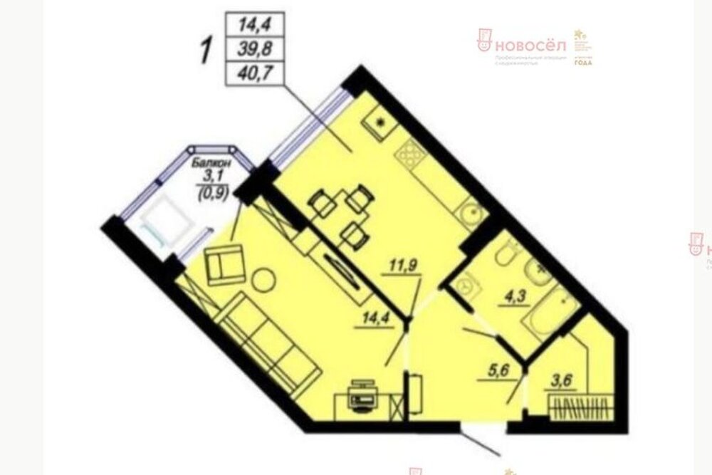 Екатеринбург, ул. Блюхера, 97 (Пионерский) - фото квартиры 23 октября 2025 90 дн. 1 31.4 4/26 5 100 000