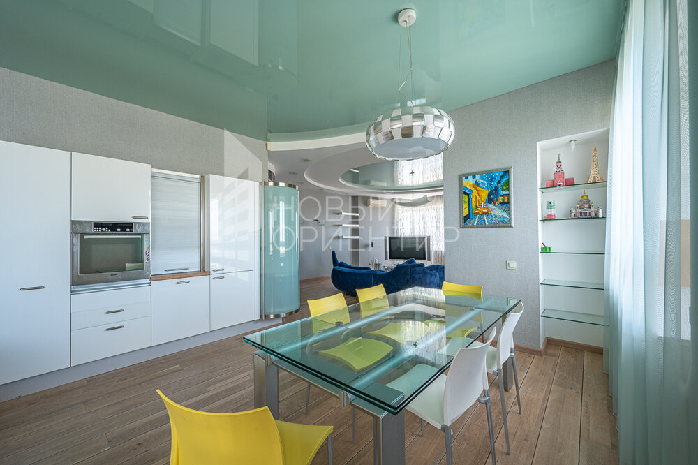 Квартира встречает Вас большой кухней-гостиной, площадью 91 м2 с эксклюзивной мебелью.