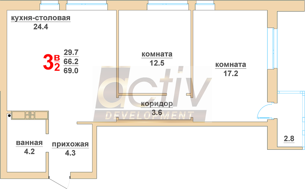 ЖБ "Евразия", оч. 2, подъезд 1, Квартира №