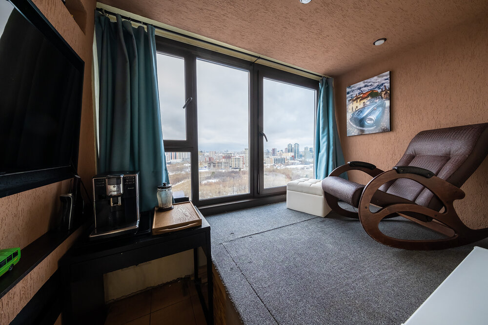 - Дополнительная площадь к жилому пространству в виде утепленной лоджии с видом на город – отличное место для работы, отдыха и утреннего кофе.