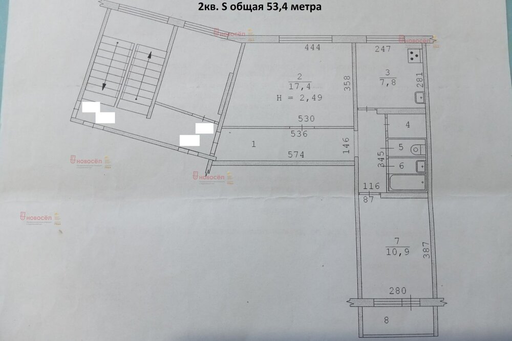 Планировка нестандартная, большая кухня. Общая площадь 53,4 метра + балкон.