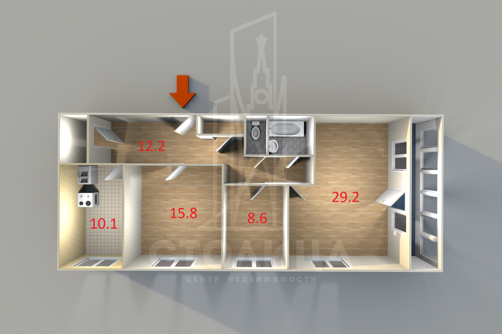 3-к квартира, Короткий, 8