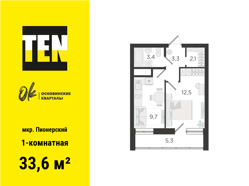 Екатеринбург, ул. Учителей, 33 (Пионерский) - фото квартиры 27 сентября 2025 90 дн. 1 35.54 12/19 6 499 999