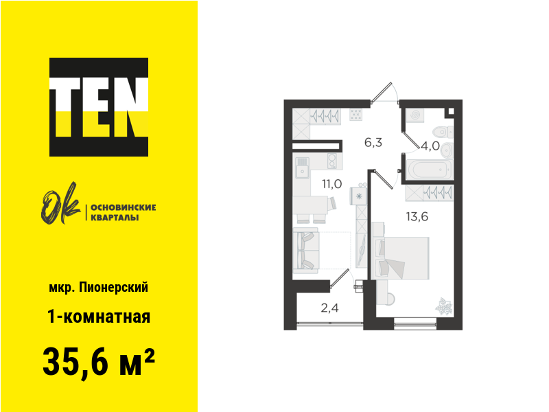 Екатеринбург, ул. Учителей, стр., 1, ЖК «Основинские кварталы» (Дом 1) - фото квартиры 7 сентября 2025 90 дн. 1 28.09 21/25 4 350 000