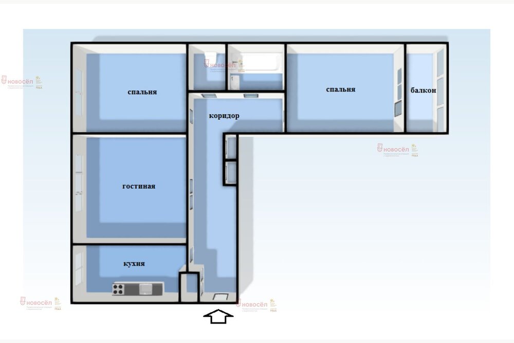 Объект № 193722. Продается трехкомнатная квартира. Планировка очень удобная. Большая лоджия, выход на нее из двух комнат, комнаты все изолированные, санузел раздельный. На площадке две квартиры. Один собственник, к продаже все готово. ***Гарантийный сертификат «Защита собственности» по данному объекту в подарок***