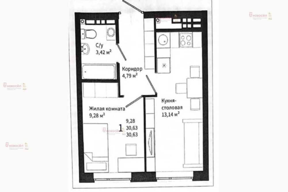Общая площадь:30.3 м2