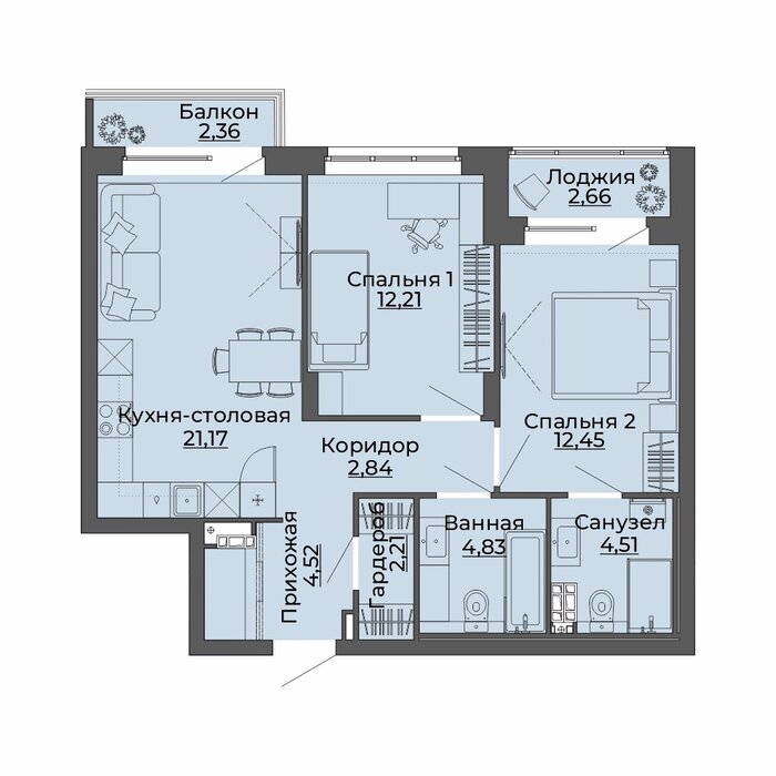 Планировки вариативны и практичны: есть квартиры с теплыми лоджиями и мастер-спальнями.