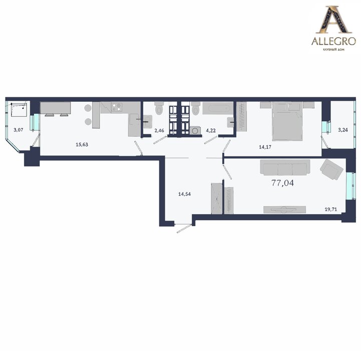 Общая площадь:77.04 м2
