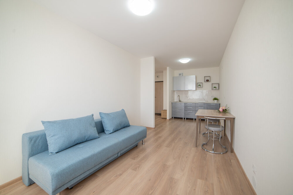 Объявление: продажа студии 27 м²Площадь: 27 кв. м.Расположение: уютный район с невысотной застройкой — без давящих высоток, приятная атмосфера.Особенности квартиры:• выдержанный стиль и современная архитектура дома;• функциональный кухонный гарнитур с варочной поверхностью (остаётся новым собственникам);• обеденная зона;• удобный диван;• вместительный шкаф купе.Инфраструктура: развитая — всё необходимое для комфортной жизни в шаговой доступности.Почему стоит рассмотреть этот вариант:• продуманная планировка: всё размещено удобно и эргономично;• мебель остаётся — можно заехать и жить сразу после сделки;• спокойный район с гармоничной застройкой, создающей ощущение уюта;• хорошая транспортная доступность и обилие социальных и бытовых объектов рядом.Звоните, чтобы договориться о просмотре! ID объекта в нашей базе: 9652