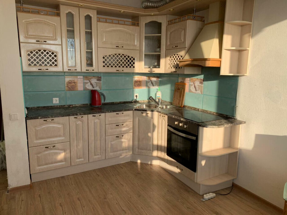 В качестве бонуса новым владельцам останется кухонный гарнитур со встроенной техникой (варочная поверхность, духовой шкаф, микроволновая печь)