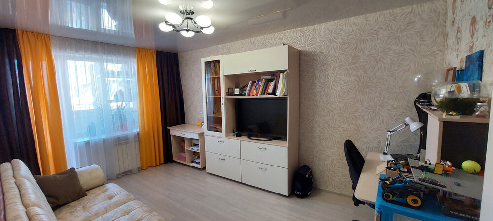В квартире выполнен евроремонт: заливка полов в кухне, коридоре, санузле. В комнатах ламинат, остекление лоджии, пластиковые стеклопакеты во всей квартире, новые радиаторы отопления, поменяны стояки во всем доме. Выровнены стены, заменена электрика по всей квартире на медную, дом в зеленом дворе, красивый вид из окон. Ванная кафель, остается водонагреватель — Electrolux, на кухне остается кухонный гарнитур с плитой Hansa. В коридоре встроенный шкаф купе.