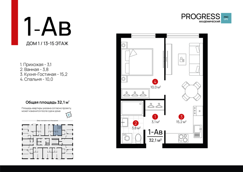 Екатеринбург, ул. Амундсена, 130/2, ЖК "PROGRESS (Прогресс) Академический" (Дом 1) - фото квартиры 8 ноября 2025 90 дн. 1 32.55 4/22 4 300 000