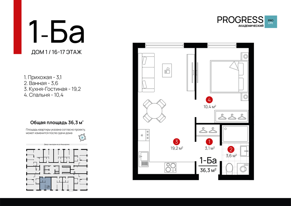 Екатеринбург, ул. Амундсена, стр., 1, ЖК "PROGRESS (Прогресс) Академический" (Дом 1) - фото квартиры 8 ноября 2025 90 дн. 1 36.3 22/22 5 200 000