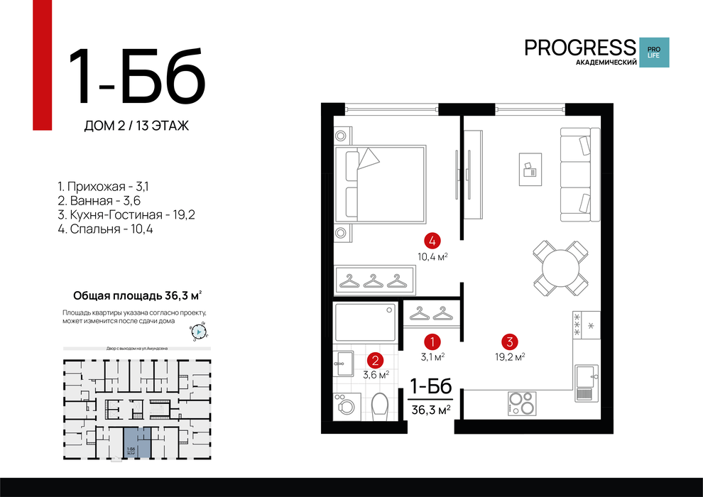 Екатеринбург, ул. Амундсена, стр., 1, ЖК "PROGRESS (Прогресс) Академический" (Дом 1) - фото квартиры 8 ноября 2025 90 дн. 1 36.3 22/22 5 200 000
