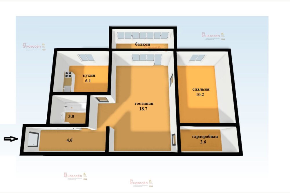 Общая площадь:45 м2