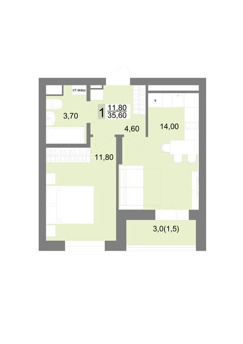 Общая площадь:35 м2