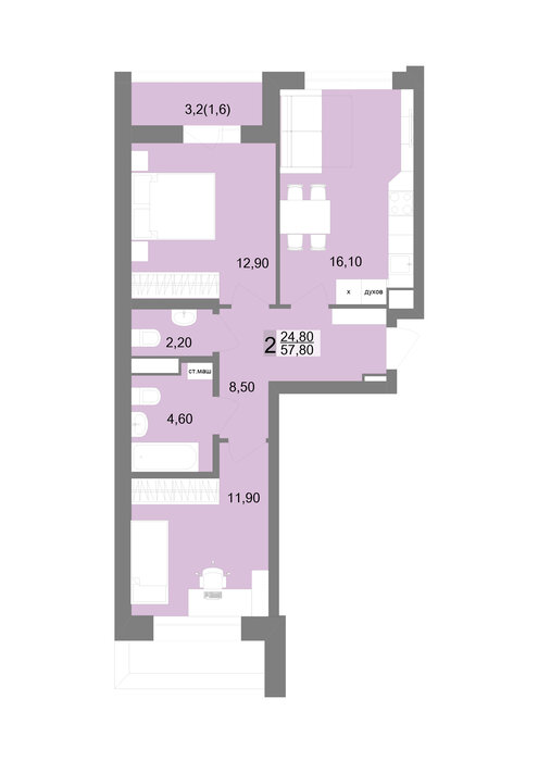 Белый парус, Татищева 4 очередь, 3 секция, Жилое помещение №102