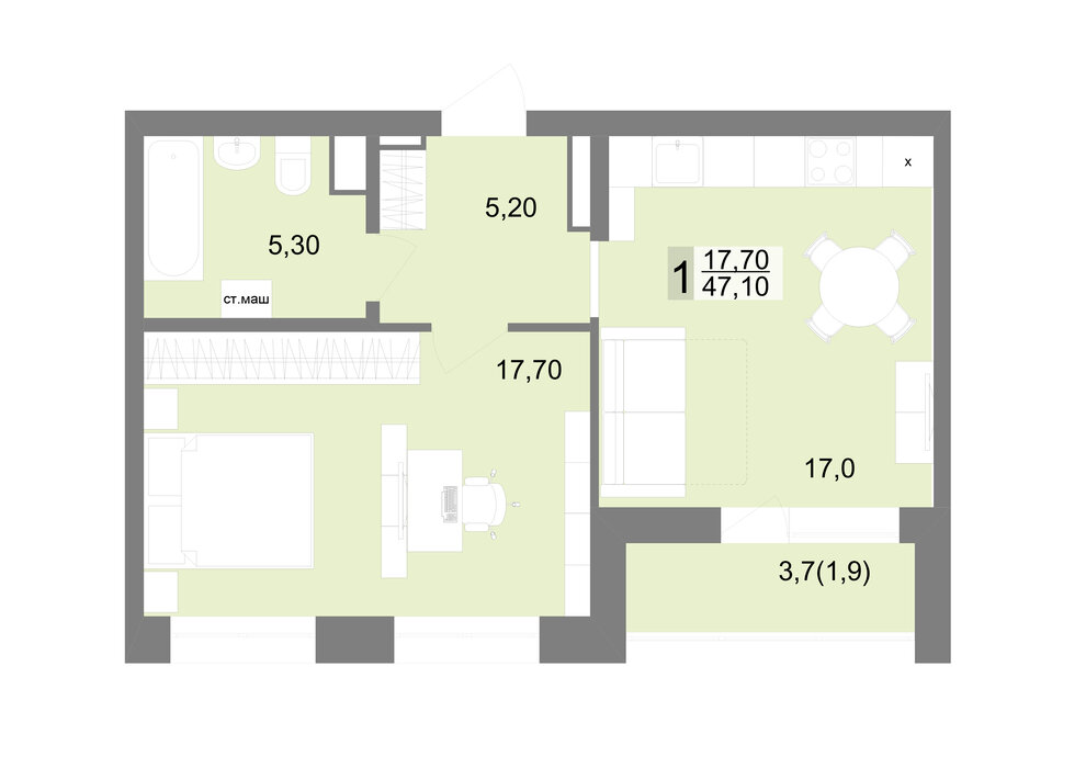 Общая площадь:47 м2