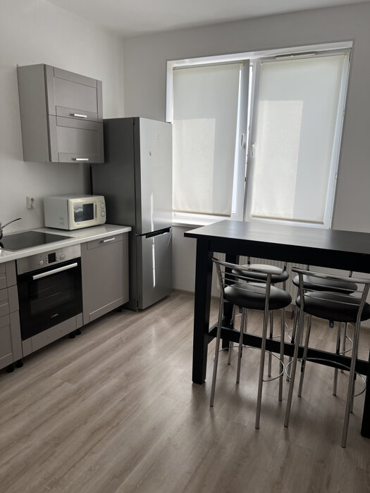 Продается очень уютная студия 27,7 кв.м в доме 2022 года постройки на 8 этаже.Окна выходят во двор на северо-восток, поэтому в квартире тихо, летом не жарко, а зимой нет никаких выхлопных газов от прогревающихся машин. Квартира с качественным ремонтом, продается "под тапочки" - можно сразу заезжать или сдавать в аренду, т.к. есть все, что нужно для проживания:❗ Кухонный гарнитур Мария со всей встроенной техникой:- Холодильник HAIER- Индукционная варочная поверхность- Духовка BOSCH- Микроволновка SAMSUNG- Посудомойка BOSCH- Система очистки воды❗ Подобранные под стиль комнаты кофе-машина и чайник ARIETE также остаются)❗ Новый раскладной диван ❗ Журнальный столик❗ Стиральная машина ❗ Продуманная гардеробная❗ Все системы хранения❗ Робот-пылесос TEFAL❗ Электроотпариватель TEFALСовременный благоустроенный двор, большая воркаут-зона. Инфраструктура полностью готова, автобусная остановка у дома, рядом Лента и другие магазины.Один взрослый собственник, обременений нет, никто не прописан, быстро выйдем на сделку.Рассмотрим любые формы оплаты. Ипотека и материнский капитал подходят.Записывайтесь на просмотр! Зайдя в эту квартиру, Вам точно захочется в ней остаться. ID объекта в нашей базе: 12324