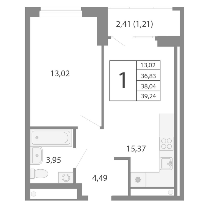 Общая площадь:37.2 м2