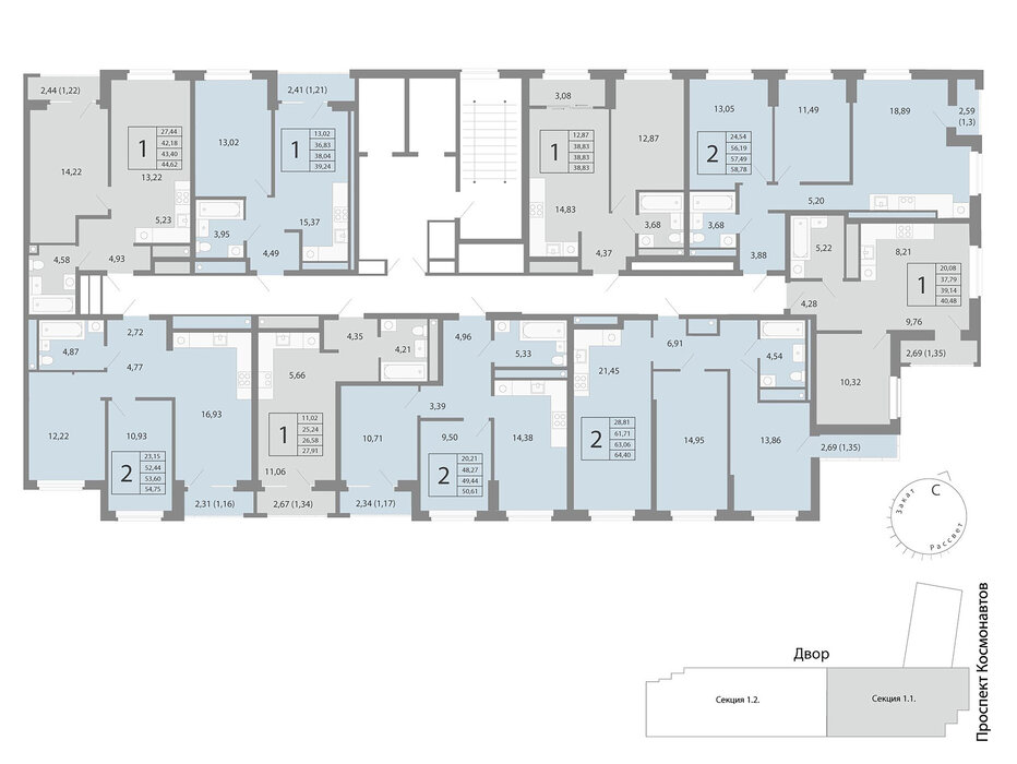 • 2-к квартира, Космонавтов, 91Б (секция 1.2)