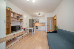 Квартира в кирпичном доме от Атомстройкомплекса. Евро трешка, большая кухня-гостиная и 2 спальни. В квартире сделан очень качественный ремонт. На полу в кухне, в ванной, кладовке керамогранит, в остальных помещениях паркет. Поменяна система отопления, сделаны теплые полы, можно пользоваться от общедомовой системы или автономно, дополнительная фильтрация воды и приточно-вытяжная вентиляция. Система Умный дом. Остается вся мебель и техника, кухонный гарнитур сделан на заказ, столешницы из натурального камня. Двор огорожен забором, лифт идет до паркинга. Есть свое парковочное место.