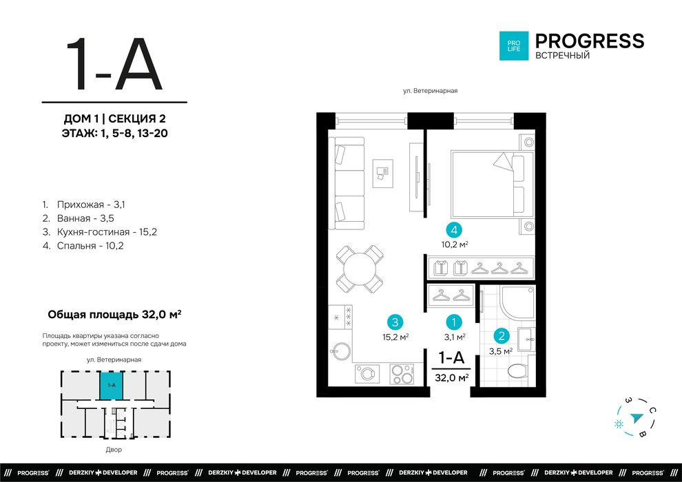 Продажа квартиры: Екатеринбург, ул. Встречный – Ветеринарная, 1-3, Жилой комплекс “PROGRESS Встречный” (Дом 1)