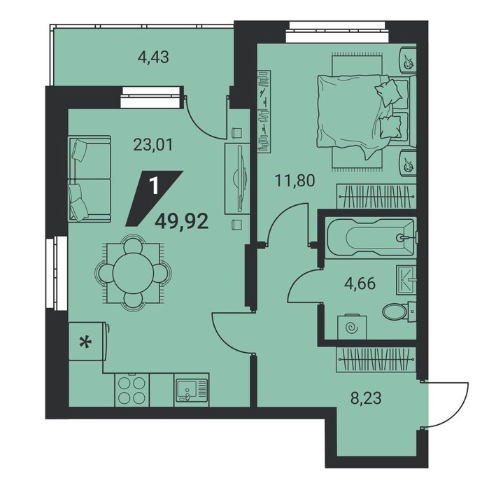 Екатеринбург, ул. Громова, 26, Дом «на Ясной» (Дом 1) (Юго-Западный) - фото квартиры 3 сентября 2025 90 дн. 1 36.32 8/27 6 050 000