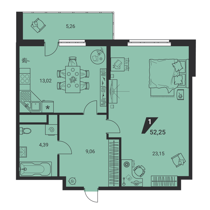 Общая площадь:52.25 м2