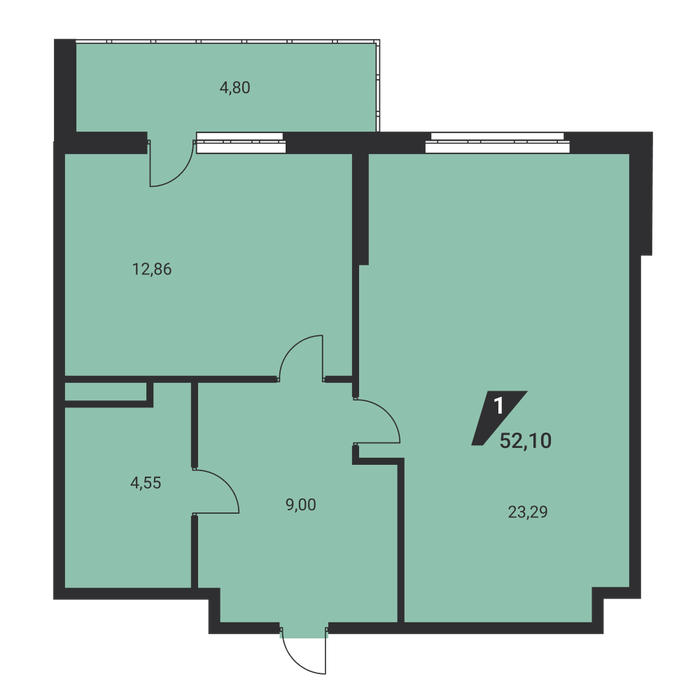 Общая площадь:52.1 м2