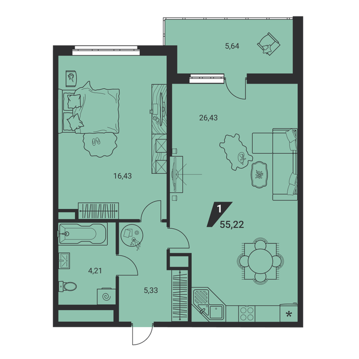 Екатеринбург, ул. Громова, 26, Дом «на Ясной» (Дом 1) (Юго-Западный) - фото квартиры 3 сентября 2025 90 дн. 1 36.32 8/27 6 050 000