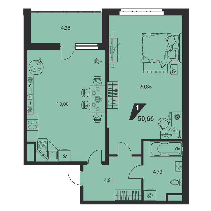 Общая площадь:50.66 м2