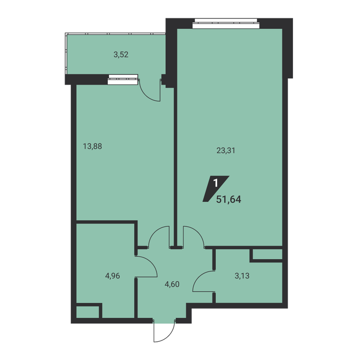Общая площадь:51.3 м2