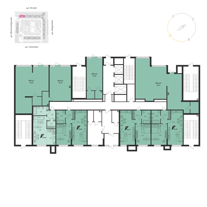В каждой секции три лифта – два пассажирских и один грузовой с увеличенной кабиной. В нем достаточно места для велосипеда или коляски. Во время ремонта или переезда удобно перевозить крупногабаритную мебель, например, диван или гардину.