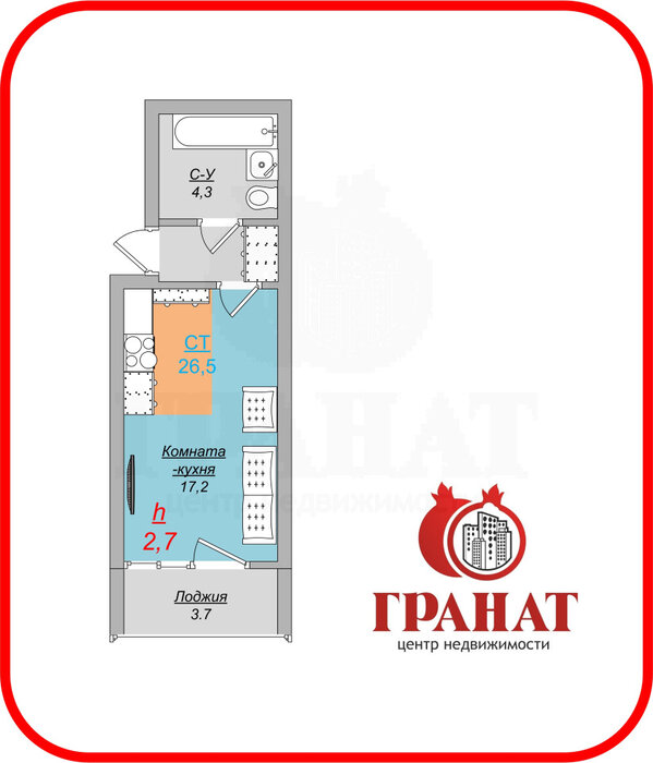 Общая площадь:26.5 м2
