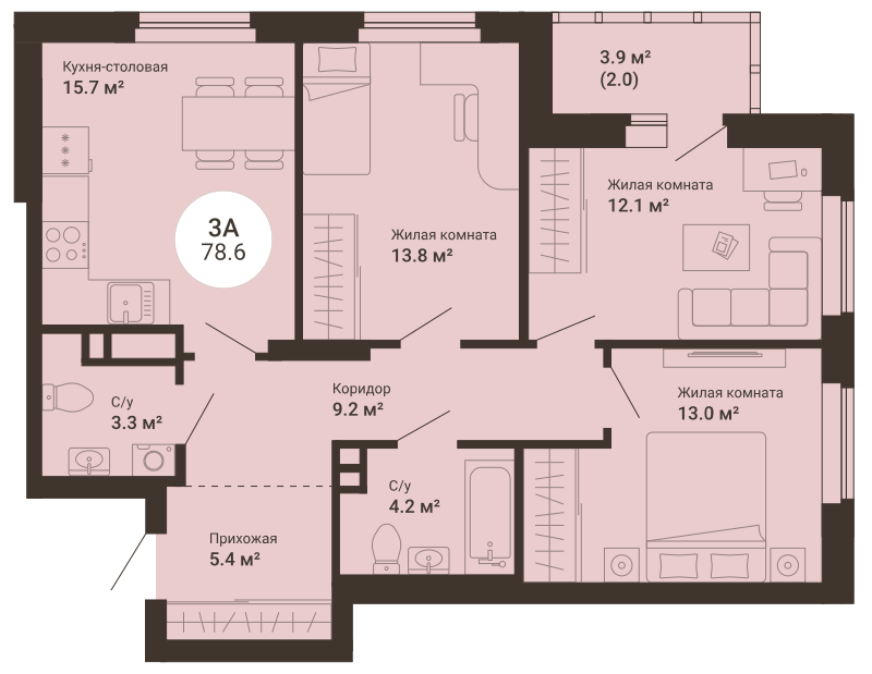 Квартиры ЖК «Южный сад» отличают функциональные планировки – правильные формы, грамотное расположение дверей и окон, каждый квадратный метр используется по назначению, есть специальные ниши для размещения шкафов.