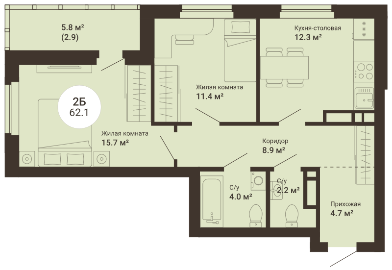 Квартиры ЖК «Южный сад» отличают функциональные планировки – правильные формы, грамотное расположение дверей и окон, каждый квадратный метр используется по назначению, есть специальные ниши для размещения шкафов.