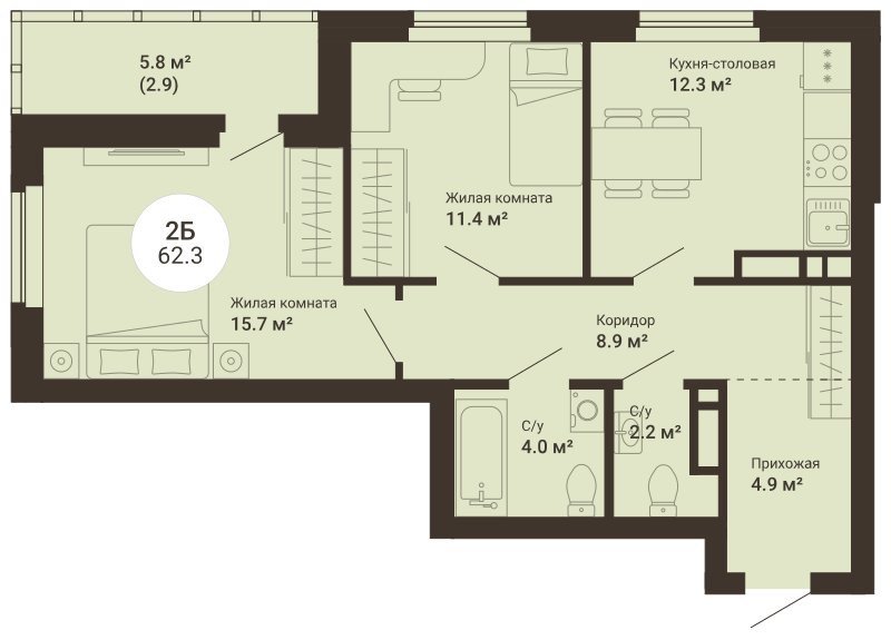 Квартиры ЖК «Южный сад» отличают функциональные планировки – правильные формы, грамотное расположение дверей и окон, каждый квадратный метр используется по назначению, есть специальные ниши для размещения шкафов.