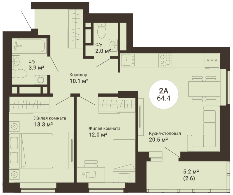 Квартиры ЖК «Южный сад» отличают функциональные планировки – правильные формы, грамотное расположение дверей и окон, каждый квадратный метр используется по назначению, есть специальные ниши для размещения шкафов.