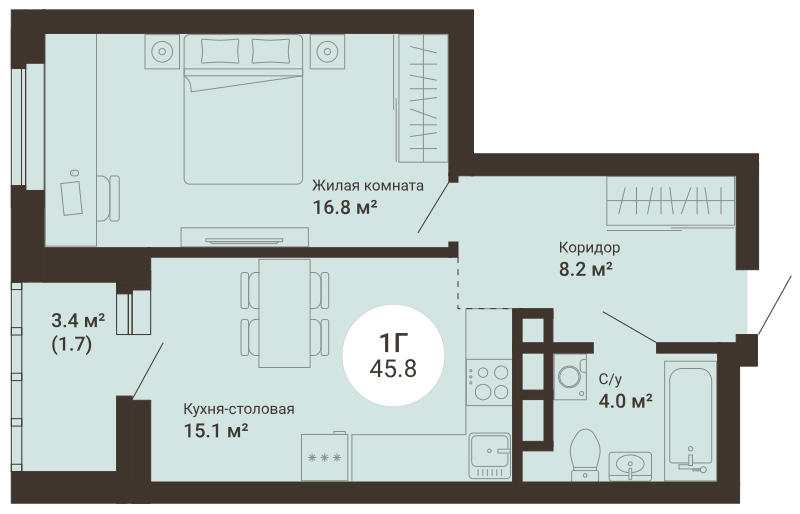 Квартиры ЖК «Южный сад» отличают функциональные планировки – правильные формы, грамотное расположение дверей и окон, каждый квадратный метр используется по назначению, есть специальные ниши для размещения шкафов.