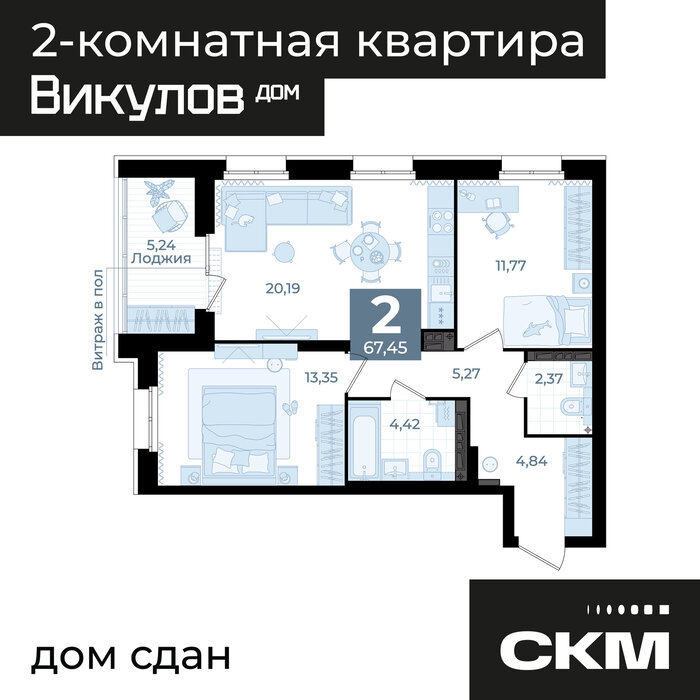 Большинство планировок имеют две и три спальни, просторные кухни-гостиные и два санузла. Места хватит даже большим семьям.
