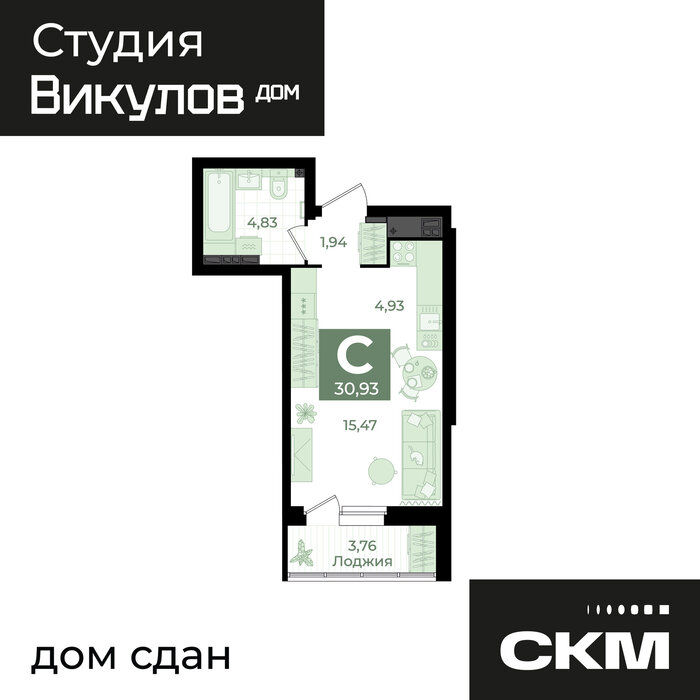 Общая площадь:30.93 м2