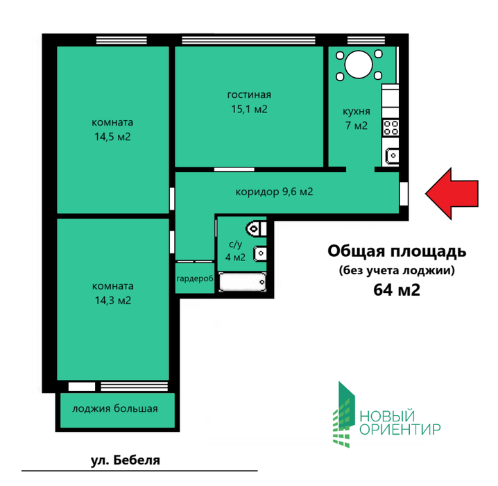 Екатеринбург, ул. Бебеля, 154 (Новая Сортировка) - фото квартиры 31 октября 2019 90 дн. 3 64 4/9 3 400 000