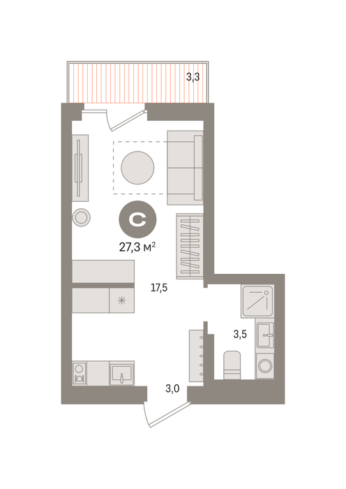 Общая площадь:27 м2