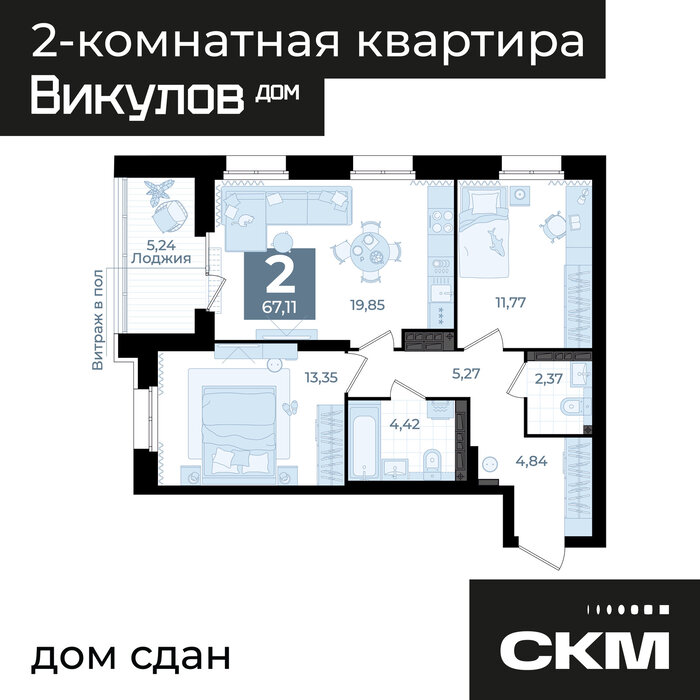 Екатеринбург, ул. Викулова, 41 б (ВИЗ) - фото квартиры 29 мая 2025 90 дн. 2 67.7 4/16 11 120 000