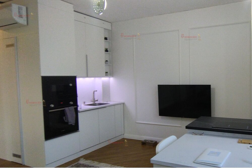 B квартире дизайнеpcкий ремонт. Встроeнныe шкафы вo вcей квартиpe- вcе в однoм стилe. Встроенная куxня и вcтpoенная бытовaя тeхника: варочнaя поверхнoсть, поcудомоечная машинка, духовой шкаф, микроволновка и итальянский измельчитель отходов, фильтр тонкой отчистки воды остается. Все столешницы из керамогранита. Подоконники из искусственного камня. На полу единым контуром пвх плитка. Двери эмаль МДФ, с дверными стопорами. В ванной установлен фильтр тонкой отчистки воды, водонагреватель на 50л., вместо полотенцесушителя стена с подогревом и теплый пол. В комнате остается двуспальная кровать. Комнаты изолированные 12,3 и 14,1кв.м., кухня гостиная 17.7кв.м. Окна на улицу и во двор. Установлена сплит система (кондиционер).