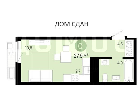 Объект № 194471. Студия 25 м2. Удобная планировка: кухня-гостиная на 2 окна. Комната правильной формы, удобно зонировать. В прихожей есть место под шкаф-купе или гардеробную. Остается кухонный гарнитур, холодильник, стиральная машина, диван, стол, комод. Большая парковка возле дома. В шаговой доступности детский сад, школа, ТЦ Лента, магазины, остановка транспорта (автобусы, трамвай), поликлиника. ***Гарантийный сертификат «Защита собственности» по данному объекту в подарок***