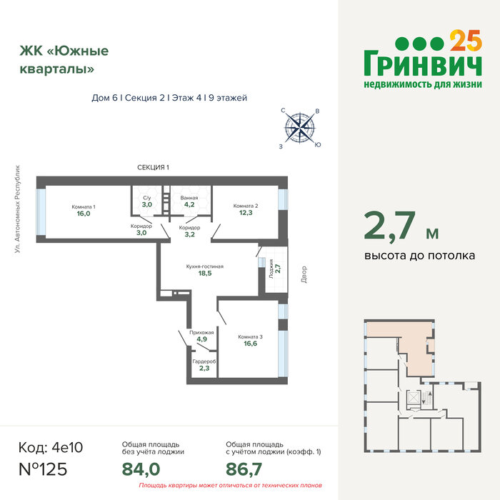 Общая площадь:86.7 м2