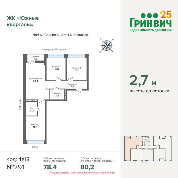 Общая площадь:80.2 м2
