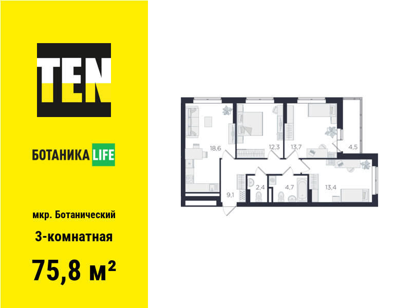 Екатеринбург, ул. 8 Марта, 204 стр, Ботаника Life (Ботаника Лайф) (Дом) (Ботанический) - фото квартиры 30 августа 2024 90 дн. 1 37.46 12/25 6 990 000